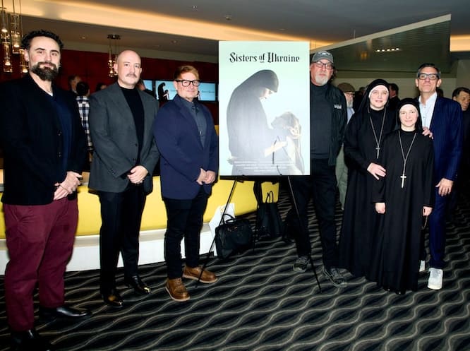 l regista Mike Dorsey e il produttore esecutivo Steven Campos hanno tenuto una proiezione esclusiva del documentario Sisters of Ukraine al Silver Screen Theater del Pacific Design Center di West Hollywood la sera del 12 dicembre 2025.